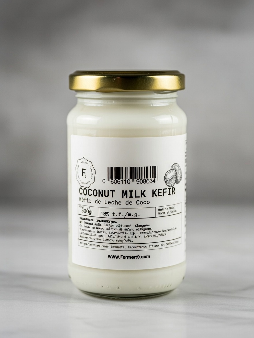 El nostre quefir fermentat sense pasteuritzar elaborat al 100% amb llet de coco sencera. 100% vegà. Al·lèrgens: coco.