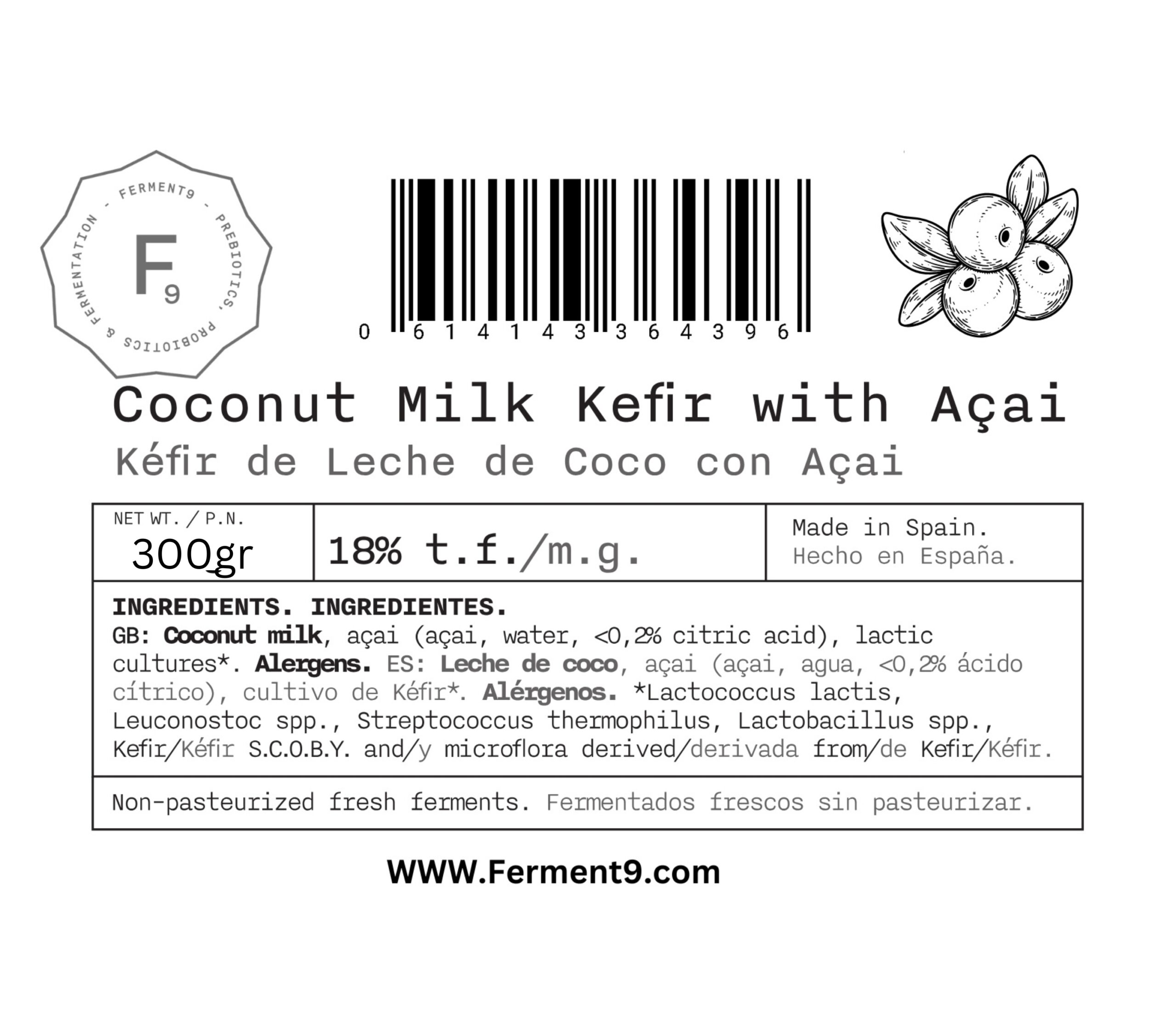 El nostre quefir fermentat sense pasteuritzar de llet de coco elaborat amb baies d’açaí plenes d’antioxidants, directes del Brasil. 100% vegà. Al·lèrgens: coco.